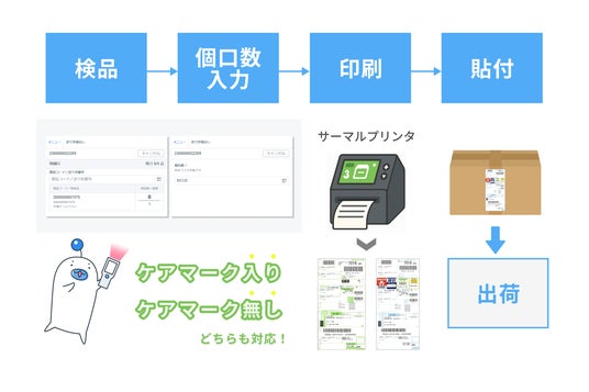 検品完了のタイミングで個数を指定して印刷ができるので、送り状の追加発行で発生していた手戻りや事務工数が大幅に削減されます。